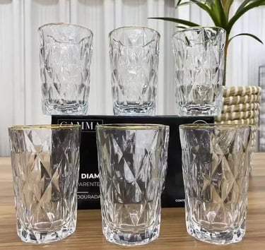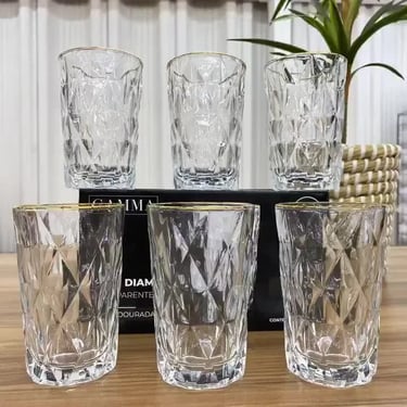 Jogo com 6 Copos Diamond Borda Dourada 340ml