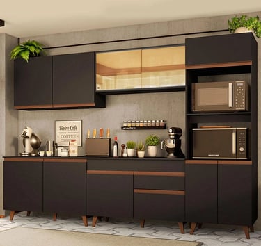 Cozinha Completa Madesa com Armário e Balcão - Preto