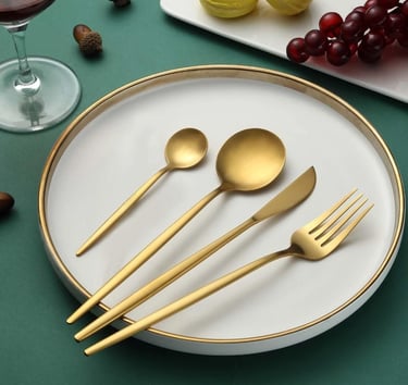 Jogo de Talheres 24 Peças em Aço Inoxidável Dourado