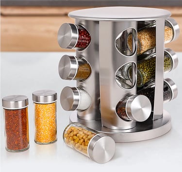 Porta Tempero Condimento Prata Giratório 12 Potes