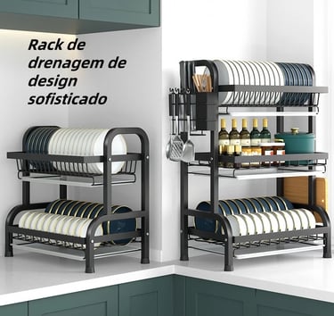 Escorredor Organizador de Louças Preto Aço Inoxidável
