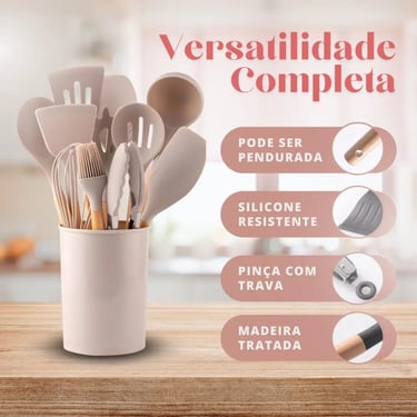 Kit Utensílios de Cozinha 12 Peças em Silicone e Madeira