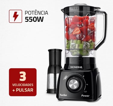 Liquidificador 3 Velocidades Turbo Power Preto Mondial